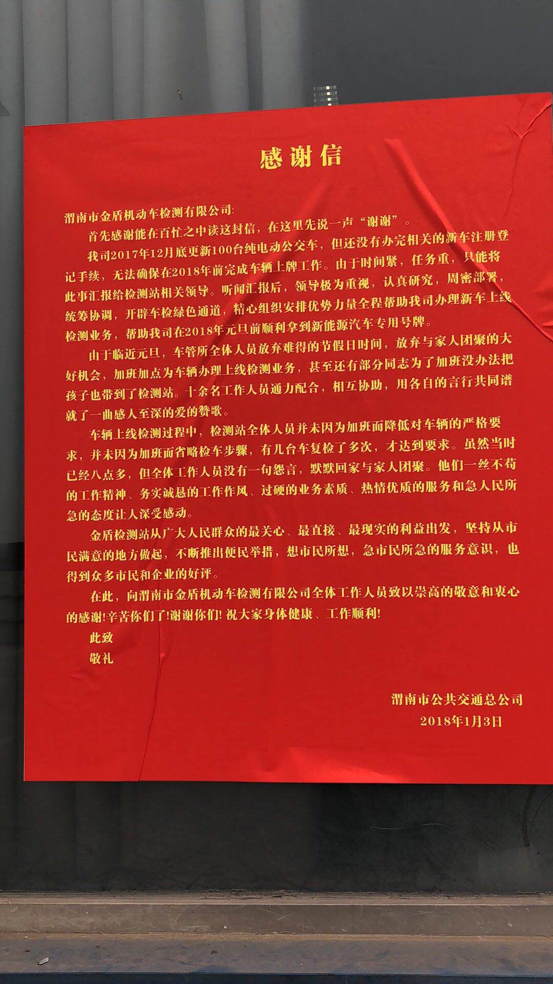 金盾機(jī)動車檢測公司收到一面錦旗和一封感謝信
